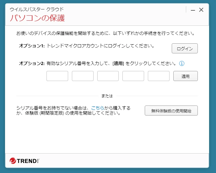 ウイルスバスター クラウド 体験版をご利用いただきありがとうございます。