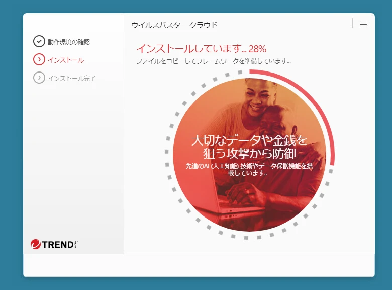 保存したウイルスバスター クラウド 体験版のアイコンをダブルクリックしてください。 インストール画面が表示されます。