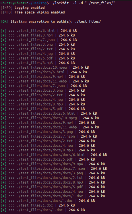 Linux版の当亜種は実行されると自身の不正活動のログを詳細に記録し、暗号化対象ファイルと暗号化回避対象フォルダを表示します(図15、16)。当動作ログがもたらす透明性から当亜種は、テスト環境内で、または、詳細な実行フィードバックを必要とする攻撃実行者によって使用されると考えられます。