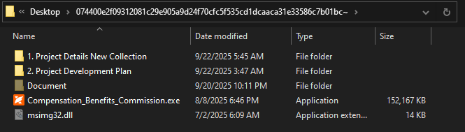 これらの圧縮ファイルは、人事部門から来た正規の書類を装っていますが、中には不正なペイロードが埋め込まれています。