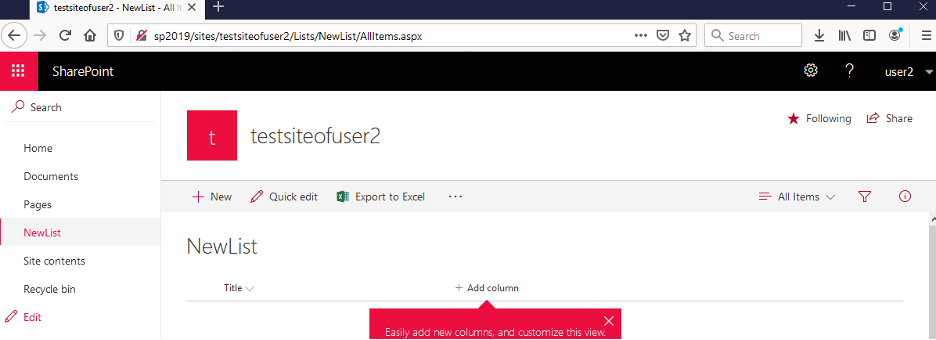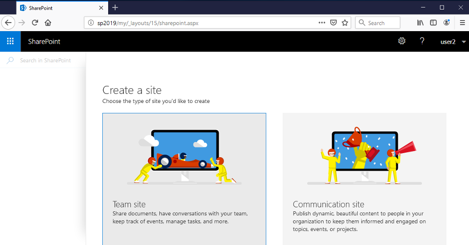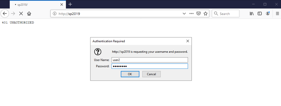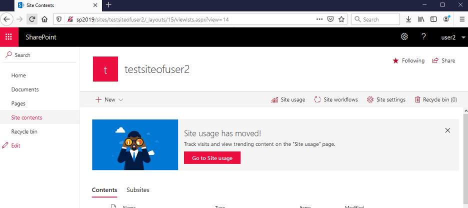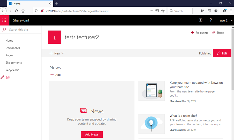 Let’s visit our SharePoint Server and authenticate as a regular user. In my case it is user2:
