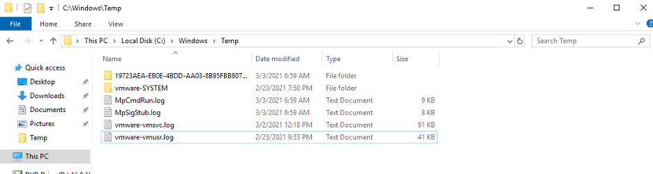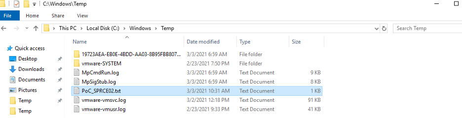 We are almost ready for the final step. But first, let’s check the C:\windows\temp folder on our target SharePoint server: