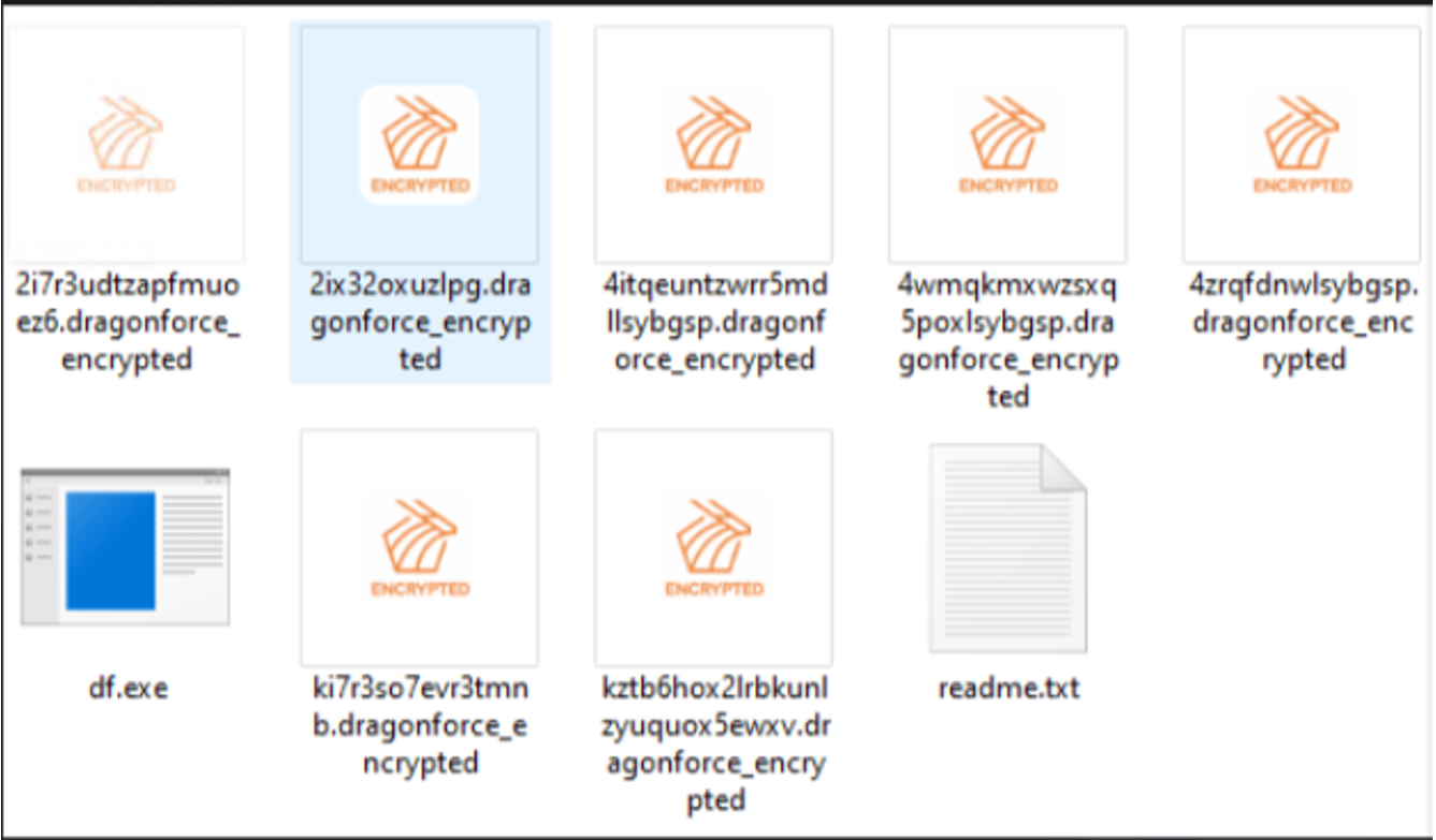 Figure 2. Encrypted files are renamed to random characters + ".dragonforce_encrypted"