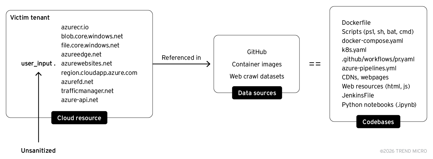 - TrendAI™ Research has found over 8,000 dangling Azure resources across Microsoft’s open-source repositories, container images, and npm packages, spanning major Azure services.