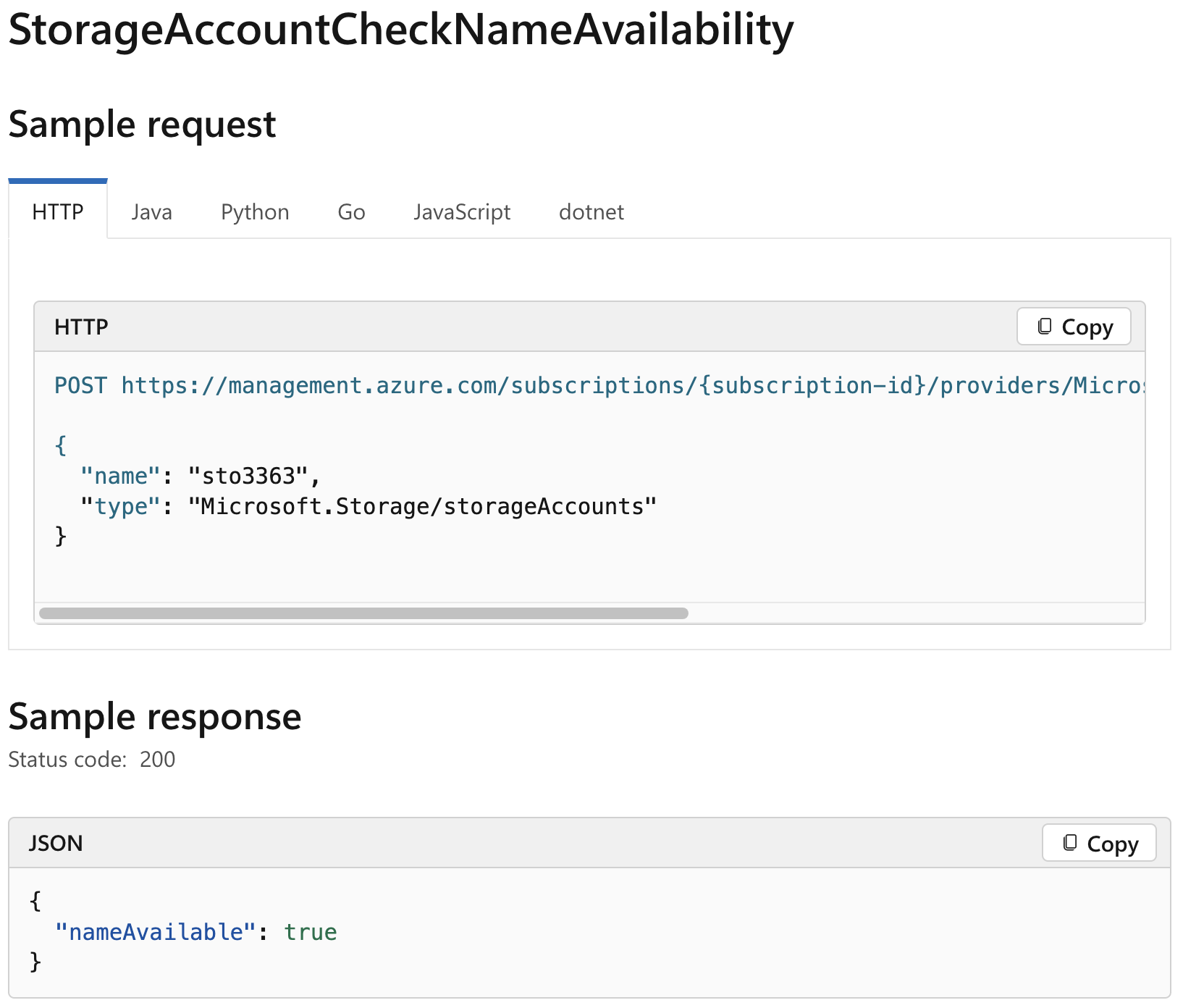 Figure 7. Azure REST API for checking Storage account names