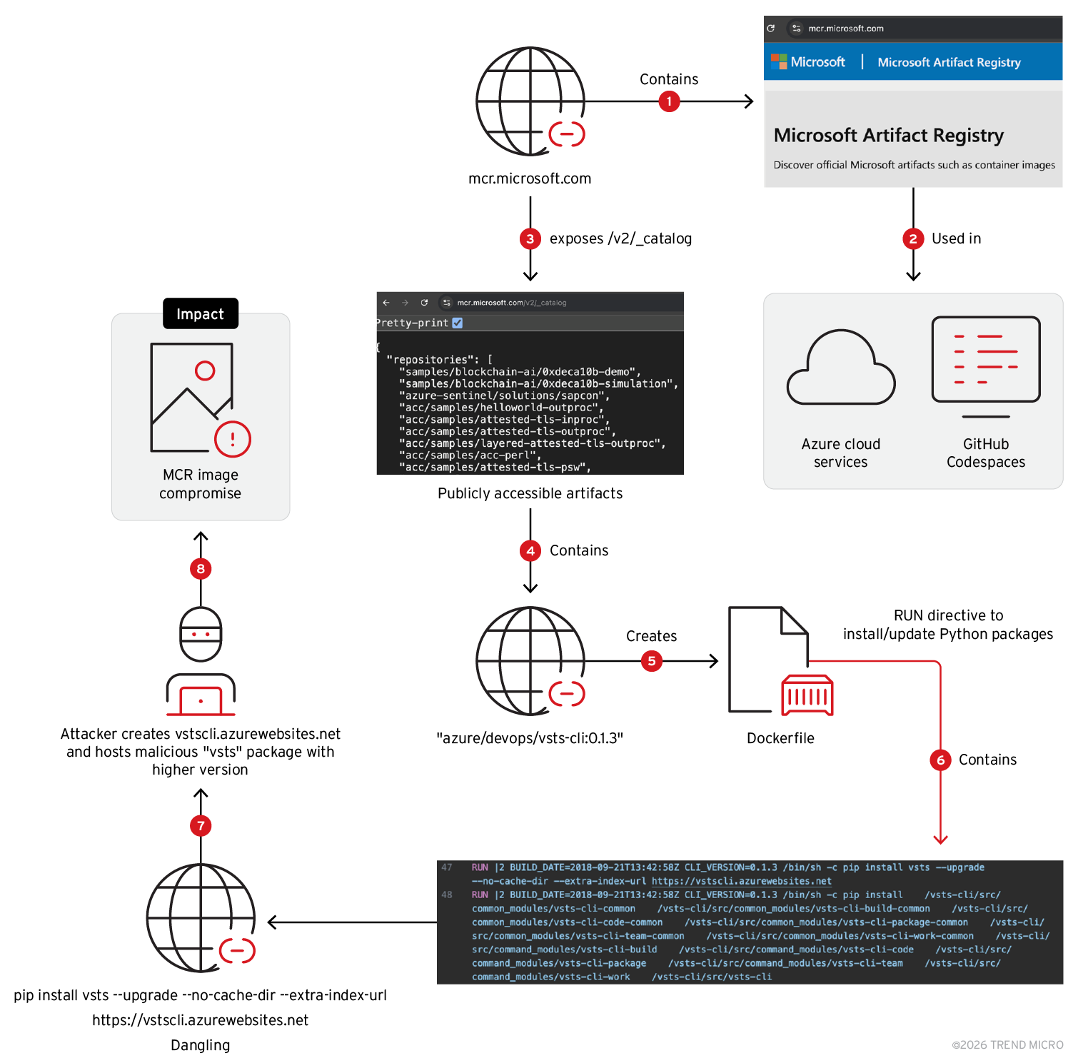 - Takeover resources that TrendAI™ Research shared with them (More than 8,000 domains across over 600 GitHub repositories, MCR container images, and npm packages).