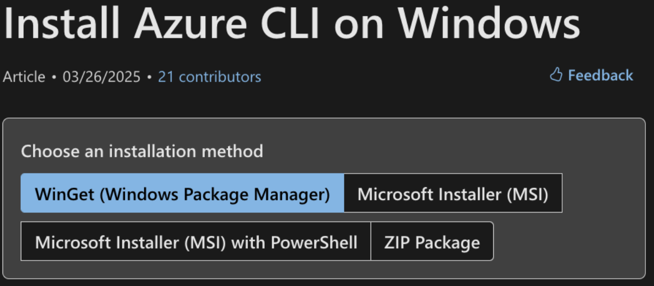 'winget install --exact --id Microsoft.AzureCLI’