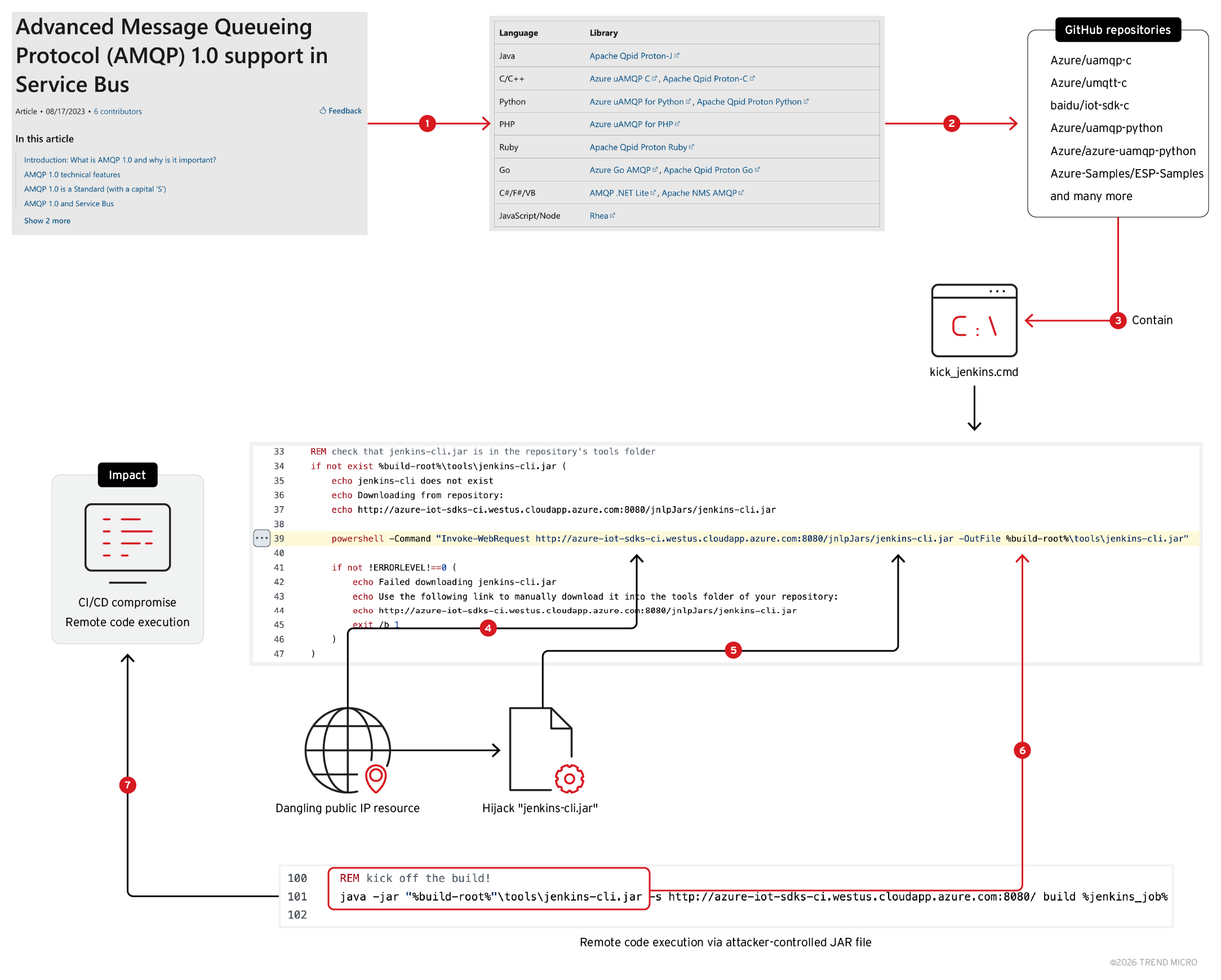 We found the repositories with the “kick_jenkins.cmd” script mentioned on official tutorials for Advanced Message Queueing Protocol (AMQP) 1.0 support in Service Bus, a generally implicitly trusted resource.