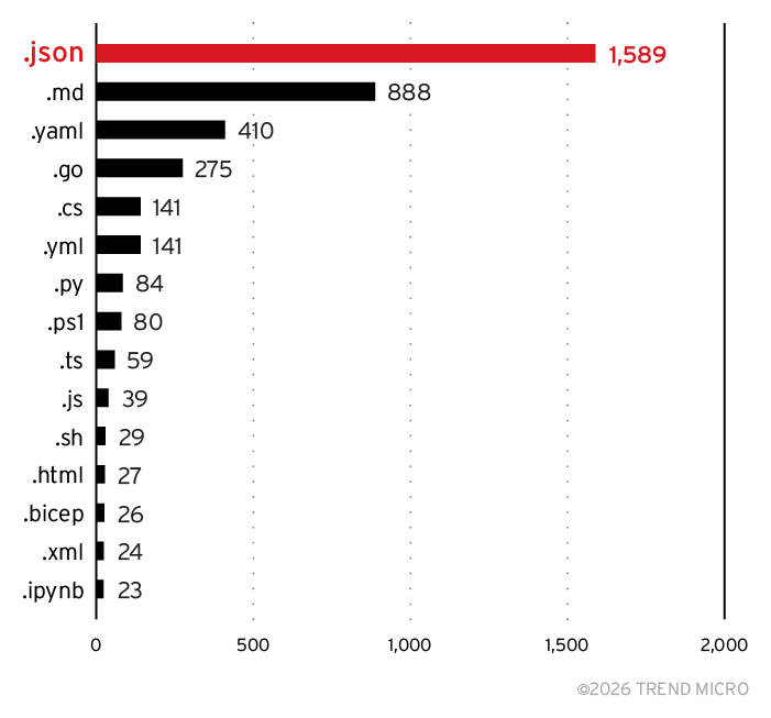Figure 36. Top 15 file extensions containing dangling Azure resources
