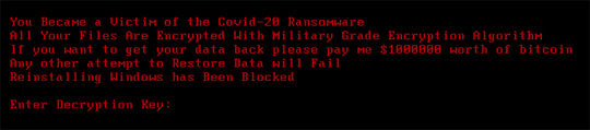 - After rebooting the system, it then displays the following as its ransom note: