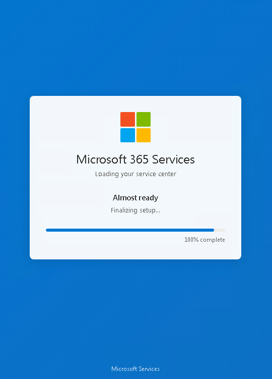 - It displays fake Microsoft 365 "Service Center" loading page: