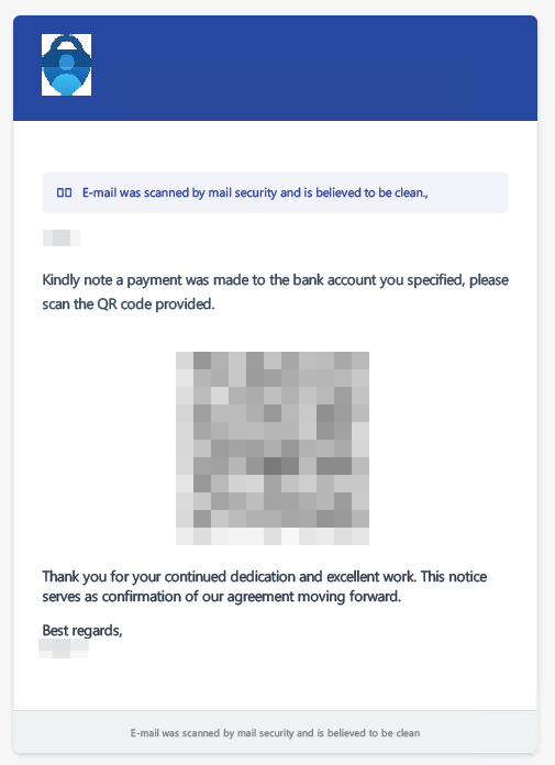 - It displays the following document to lure the user into scanning a malicious QR code: